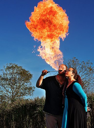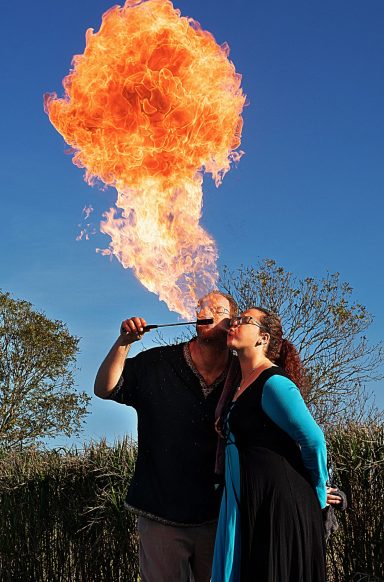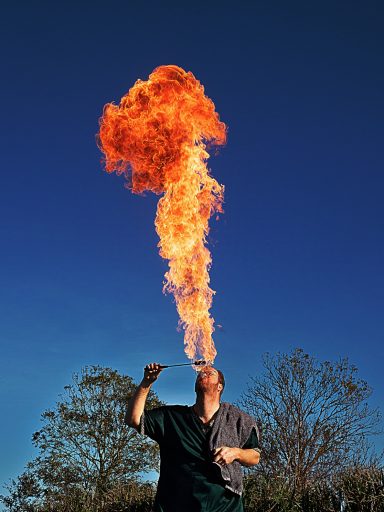 Een jaar geleden kreeg ik eindelijk de kans om te leren vuurspuwen en te spelen met vuur-sop. Bij het vuurspuwen bleek al snel dat Marijn een verborgen talent is. Daar gaan we gebruik van maken. Hier een paar voorbeelden maar er komt meer